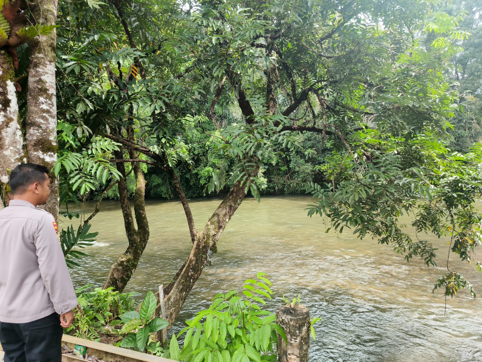Pengecekan debit air DAS Delang oleh anggota piket Polsek Delang dilakukan secara rutin setiap hari dan saat ini kedalaman air Pada Level 60 cm pada Level NORMAL masih dilevel status aman. (Hms)