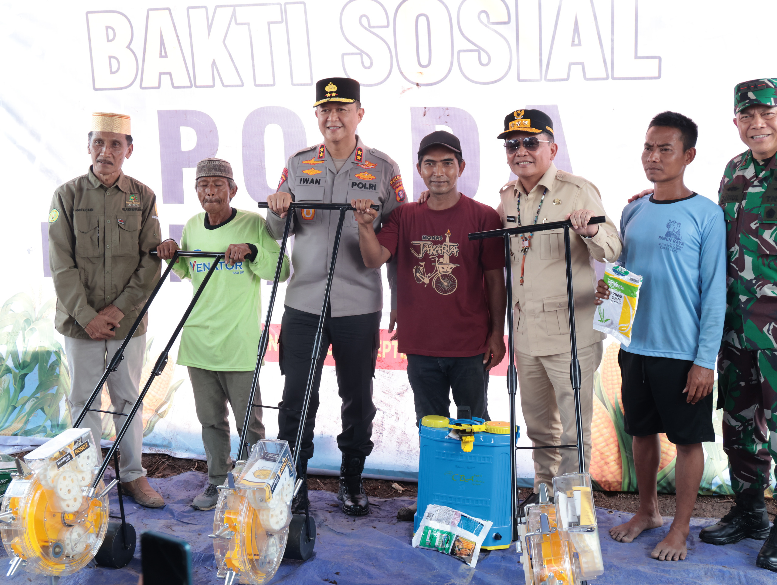 Pulang Pisau – Usai melaksanakan Panen Raya Jagung Serentak Kuartal III di Desa Anjir, Kecamatan Kahayan Hilir, Kabupaten Pulang Pisau, Kapolda Kalimantan Tengah (Kalteng), Irjen Pol Iwan Kurniawan, bersama Gubernur H. Agustiar Sabran, menggelar Bakti Sosial (Baksos) dan menyerahkan bantuan alat dan mesin pertanian (Alsintan).