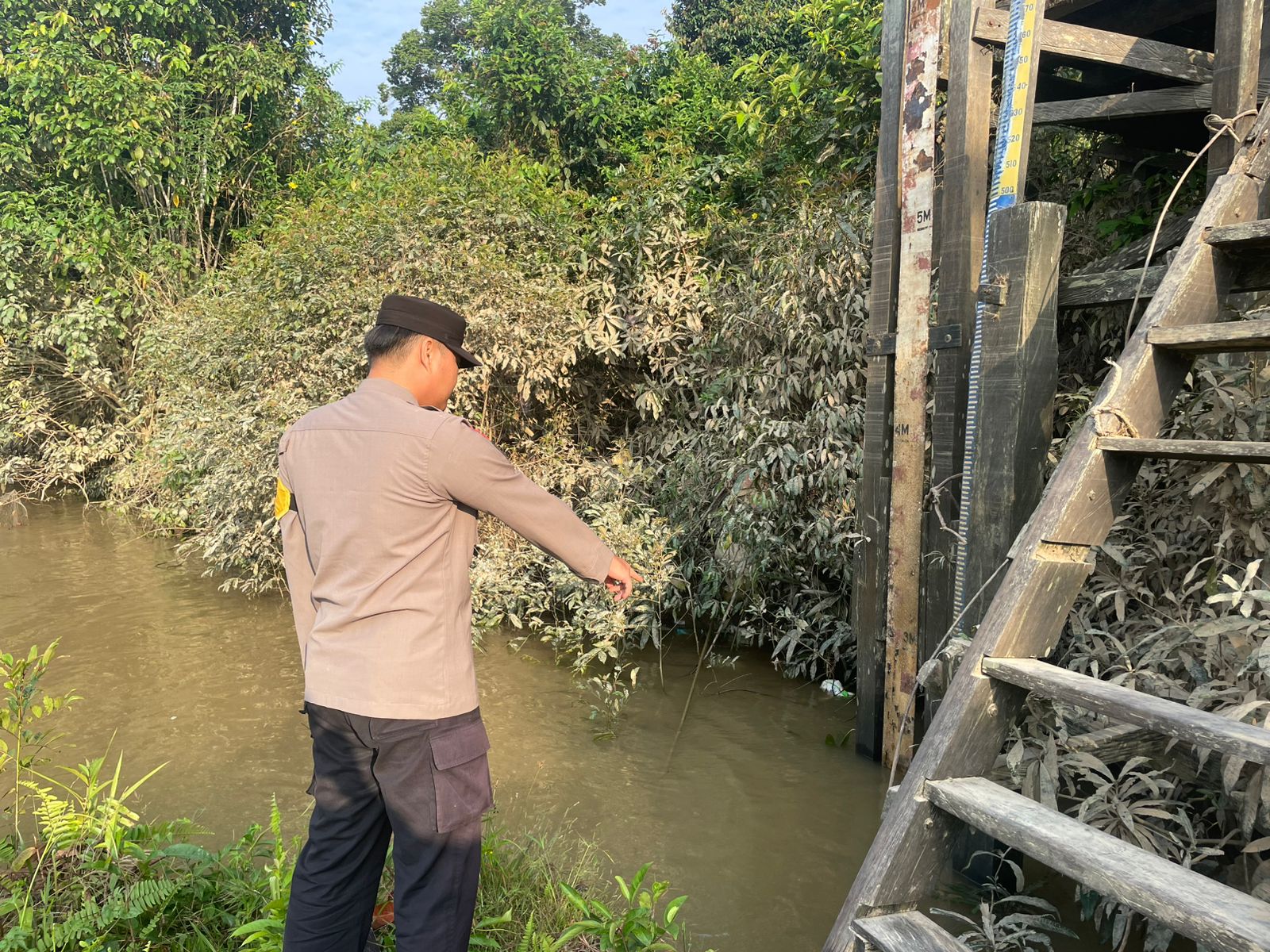 Polres Lamandau – Personel Polsek Lamandau Melaksanakan Patroli dan Pantau Cek debit air Sungai Lamandau Antisipasi terjadinya Bencana banjir di Wilayah Kabupaten Lamandau Khususnya Kecamatan Lamandau yang bertempat di Dermaga Tapin Bini, kecamatan Lamandau, Kabupaten Lamandau, Provinsi Kalteng, Minggu (28/9/25) Pagi.