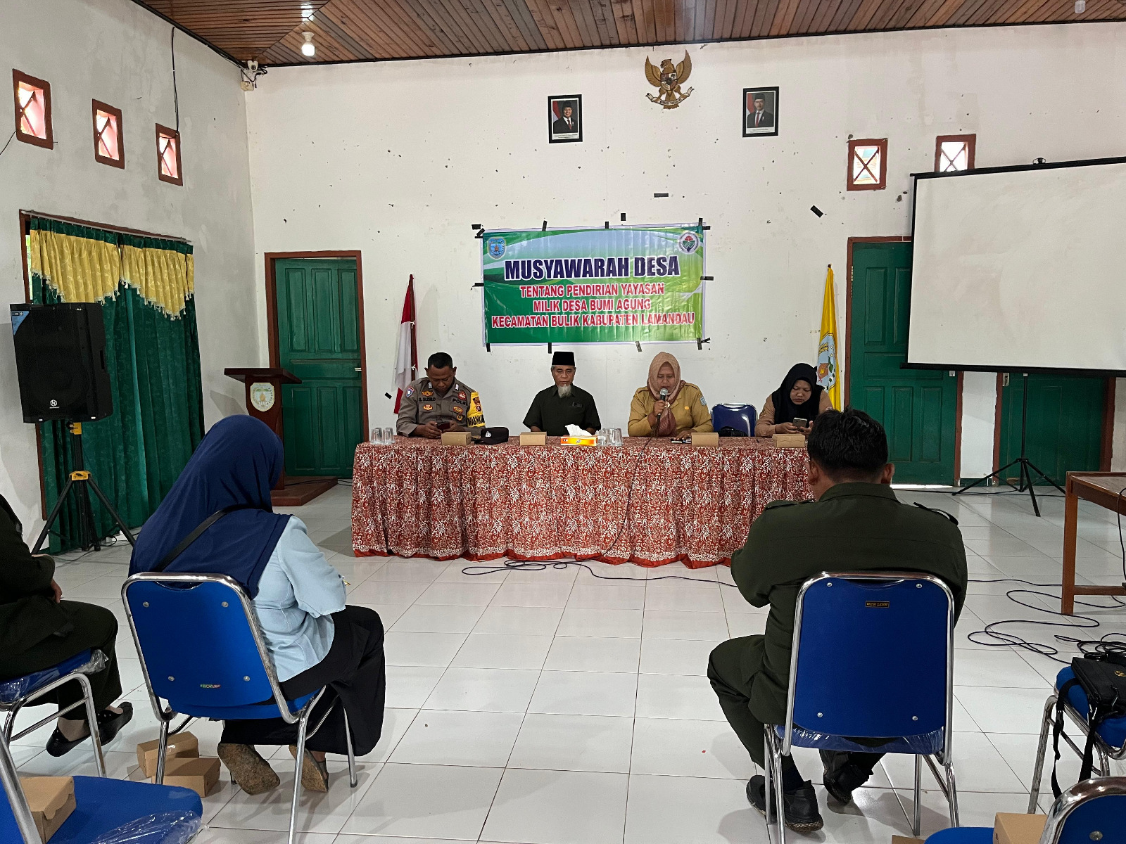 Bhabinkamtibmas Polsek Bulik Hadiri Musyawarah Desa Bumi Agung Bahas Pendirian Yayasan Milik Desa