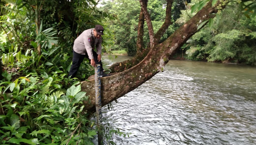 Polres Lamandau – Polsek Delang, Piket Polsek Delang melakukan kegiatan rutin pengecekan debit air DAS Delang di TMA Kelurahan Kudangan RT.02 Kecamatan Delang, Rabu (1/10/25) Pagi