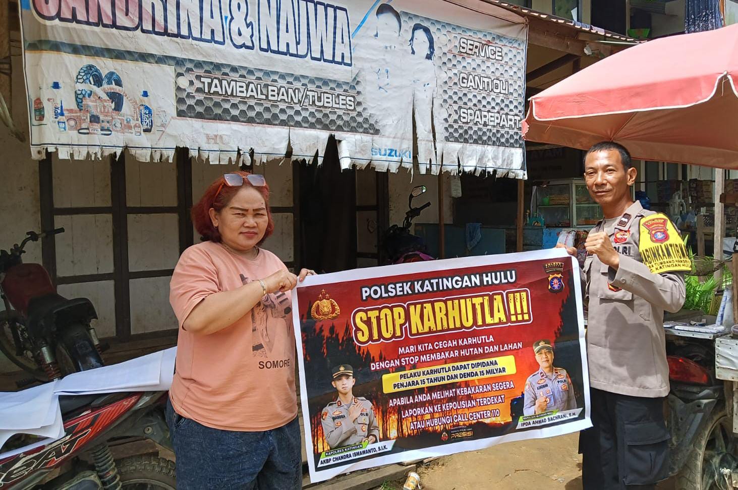 Kapolres Katingan AKBP CHANDRA ISMAWANTO S.I.K melalui Kapolsek IPDA AHMAD SACHRANI, S.H menyampaikan kegiatan ini dilakukan secara rutin dan terus-menerus dengan langsung turun ke semua wilayah baik pada tingkat Desa maupun pada tingkat Kecamatan agar masyarakat mengetahui tentang LARANGAN MEMBAKAR HUTAN DAN LAHAN.