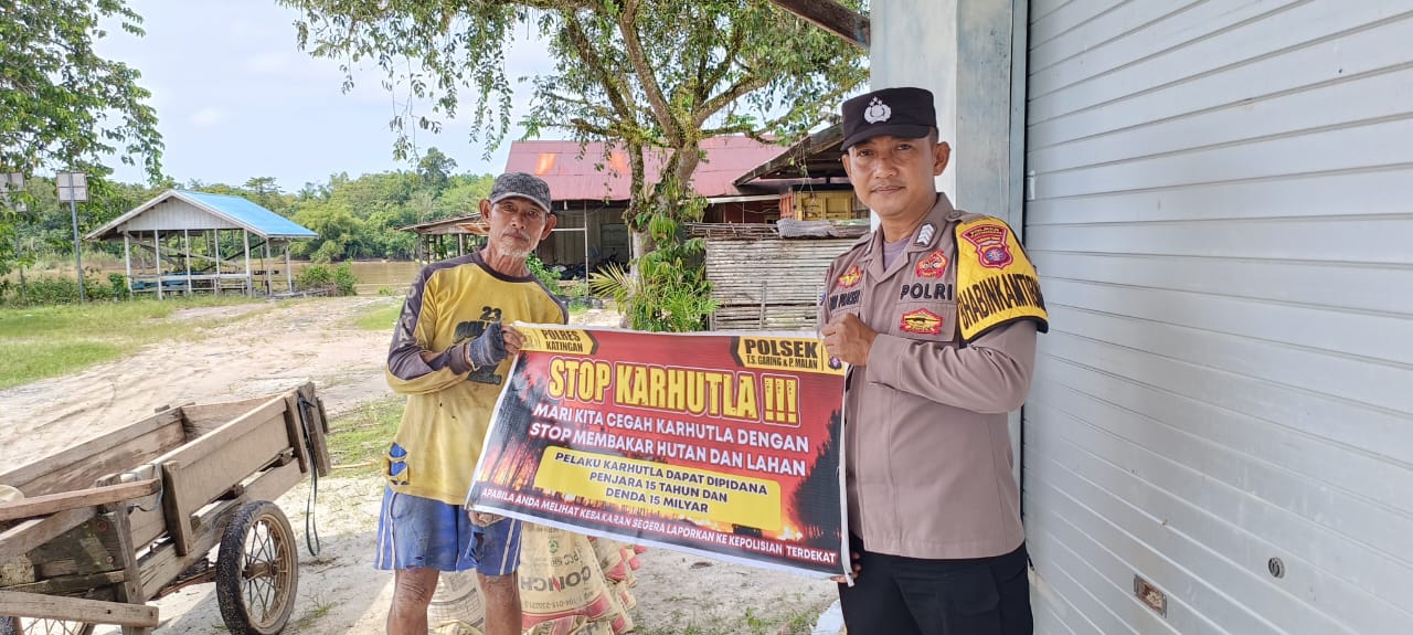 Polres Katingan – Salah satu cara Polsek Tws. Garing dan Pulau Malan, Polres Katingan, Polda Kalimantan Tengah dalam menangani Dampak KARHUTLA, Bhabinkamtias polsek Tws. Garing dan Pulau Malan melaksanakan Sosialisasi STOP!!! KEJAHATAN TERHADAP LINGKUNGAN “DILARANG MEMBAKAR HUTAN DAN LAHAN DI WILKUM POLSEK TWS GARING DAN P. MALAN kepada masyarakat Desa Tura Kec. Pulau Malan, Kab. Katingan kegiatan, Kamis (02/10/2025) pagi.