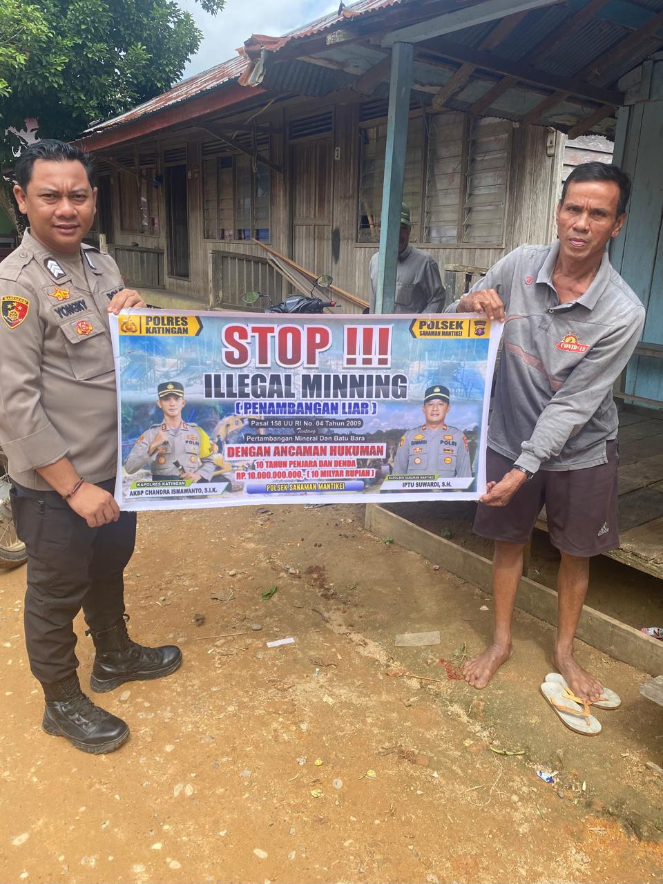 Kapolres Katingan AKBP CHANDRA ISMAWANTO, S.I.K., melalui Kapolsek Sanaman Mantikei Iptu SUWARDI, S.H., menjelaskan kegiatan Bhabinkamtibmas jajaran Polres Katingan dengan cara sosialisasi kepada masyarakat agar mengerti dan memahami tentang larangan Ilegal Mining serta mengerti bahwa dampak dan akibat yang di timbulkan akibat Illegal mining tersebut.