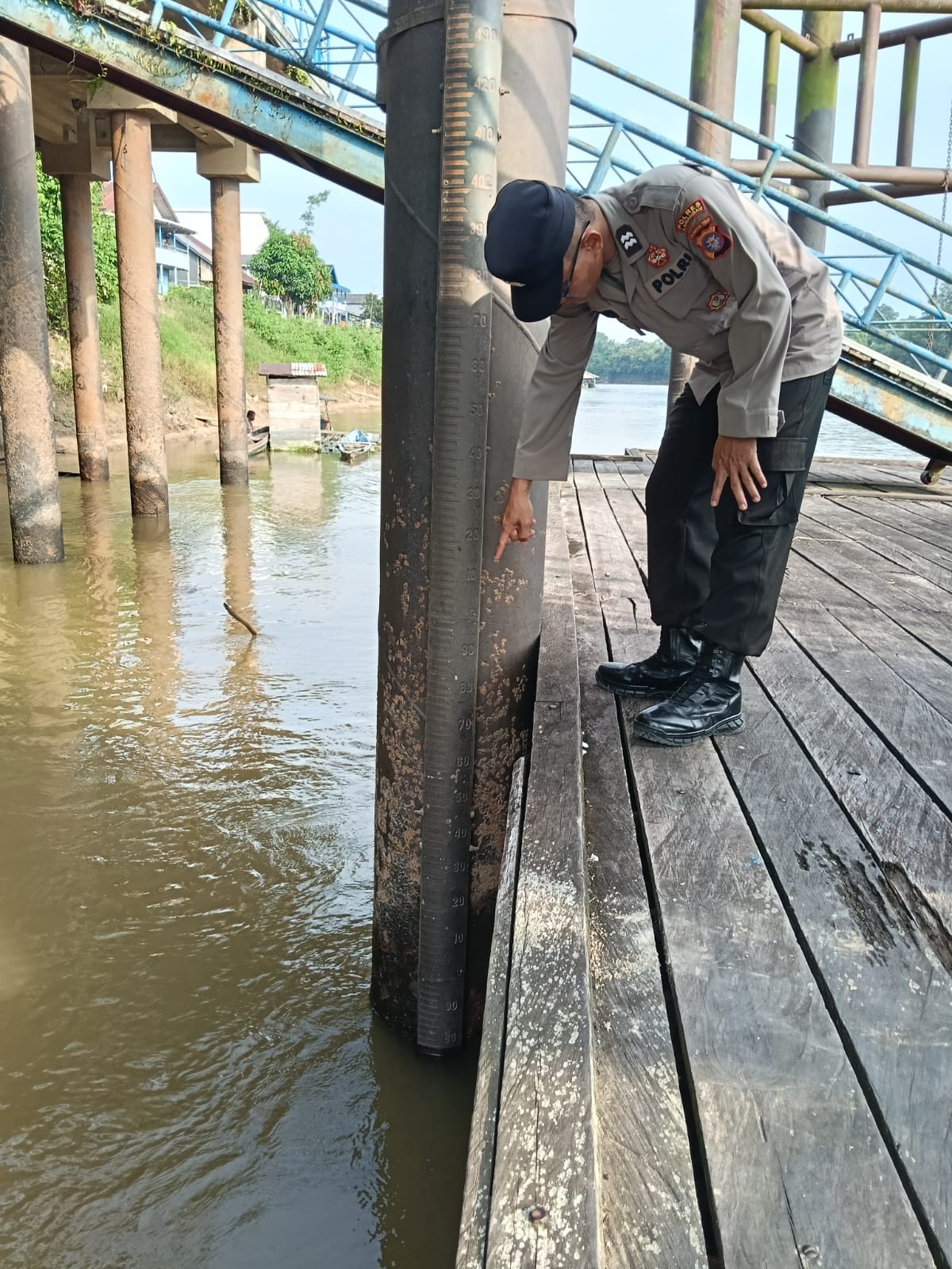 Polres Lamandau – Personil Polsek Bulik melakukan kegiatan rutin pengecekan debit air DAS lamandau di TMA Kelurahan Nanga Bulik, Sabtu (11/10/25) pagi