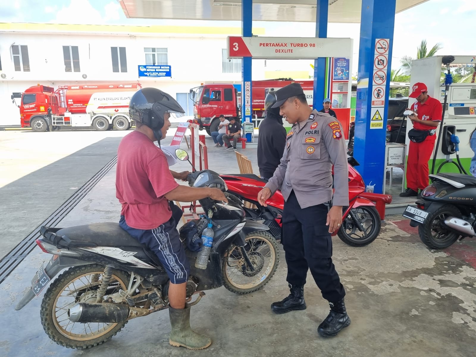 Cegah Ketidakstabilan Situasi di SPBU, Polsek Teweh Patroli ke SPBU Kecamatan Teweh Tengah
