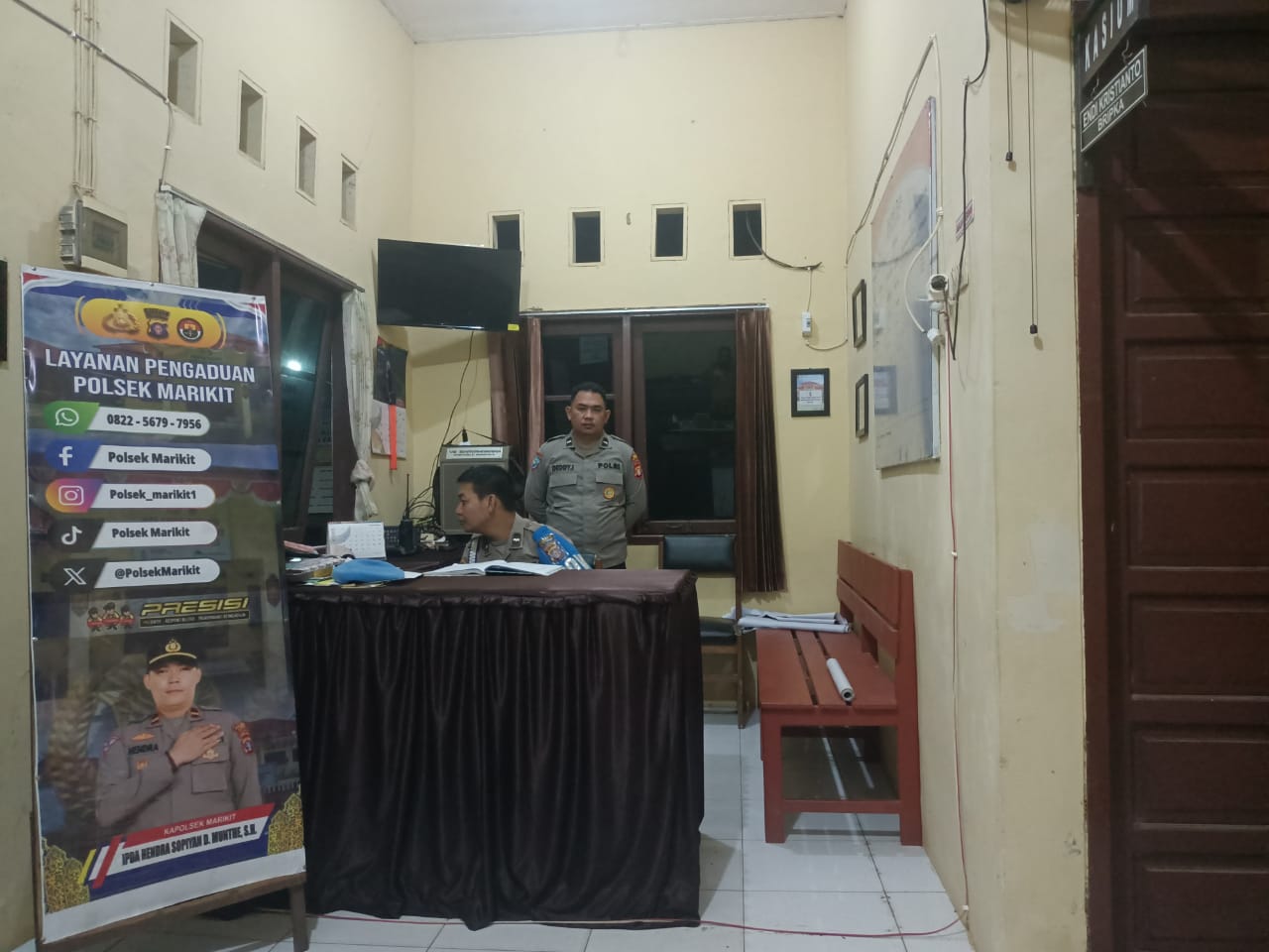 “Personel Polsek Marikit melaksanakan penjagaan di ruang pelayanan Mako Polsek hal tersebut bertujuan untuk menjaga serta melindungi Mako dan personel Polsek juga tetap melaksanakan patroli untuk mengantisipasi Gangguan Kamtibmas diwilayah hukum Polsek Marikit”. Jelasnya.