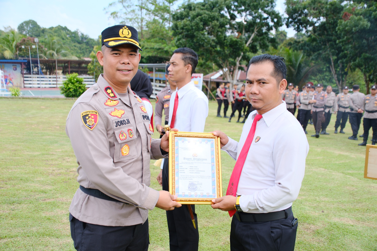 Nanga Bulik – Kapolres Lamandau AKBP Joko Handono, S.I.K., M.H. memimpin langsung upacara pemberian penghargaan kepada personel Polres Lamandau yang berprestasi dalam pelaksanaan tugas, bertempat di halaman Mapolres Lamandau pada hari Kamis (16/10/25) Pagi.