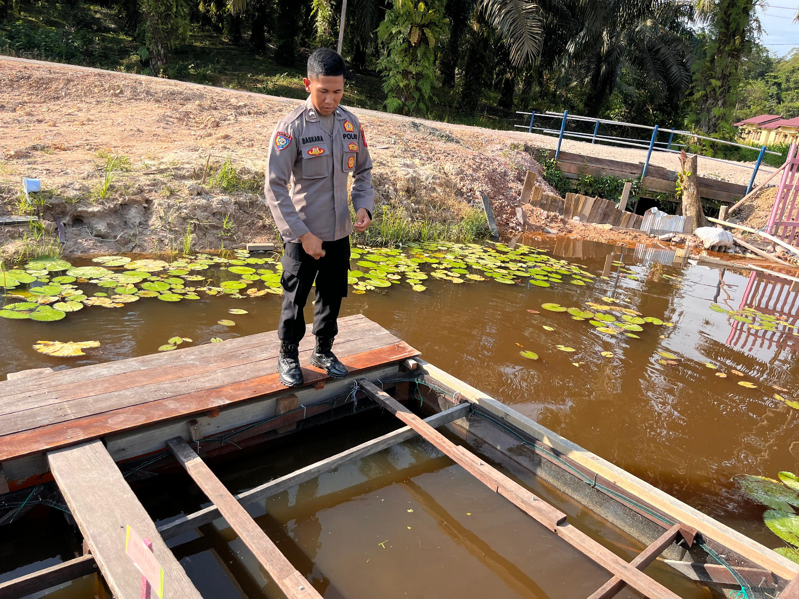 Nanga Bulik – Dalam rangka mendukung program pemerintah di bidang ketahanan pangan, personel Satuan Pembinaan Masyarakat (Sat Binmas) Polres Lamandau melaksanakan kegiatan pengecekan dan pemberian pakan ikan pada keramba yang berada di lahan Ketahanan Pangan Polres Lamandau, Kamis (16/10/2025).
