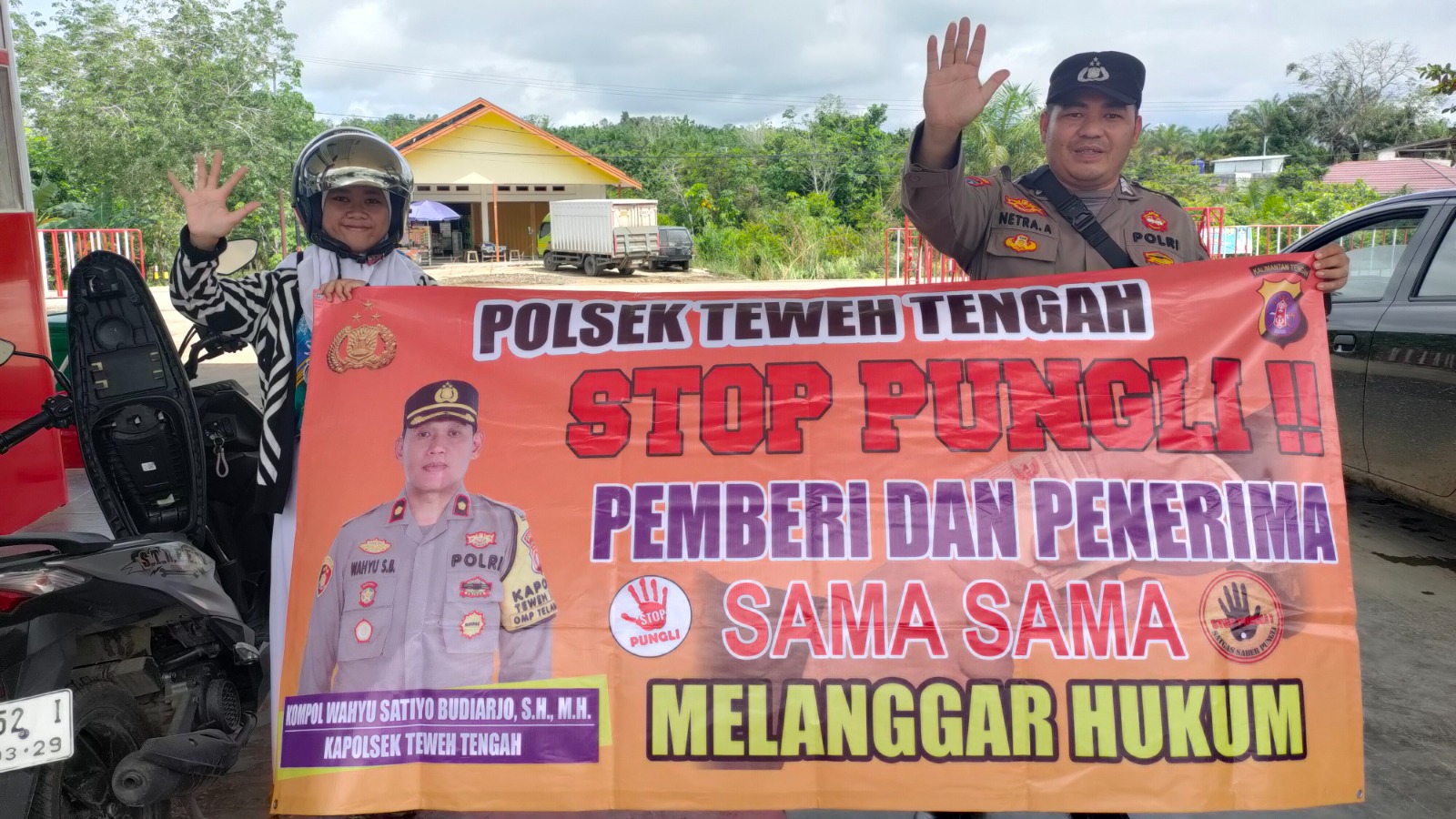 Kapolres Barut AKBP Singgih Febiyanto, S.H., S.I.K. melalui Kapolsek Teweh Tengah KOMPOL Wahyu Satiyo Budiarjo, S.H., M.H. mengatakan anggota Polsek Teweh Tengah dengan humanis memberikan pemahaman dan edukasi kepada masyarakat untuk bersama-sama memberantas aktivitas pungutan liar serta mengedukasi bahwa pemberi dan penerima sama-sama melanggar hukum dan akan dikenakan sanksi Pidana.” Rabu (15/10/2025) Pagi mulai Pukul 09:30 WIB.