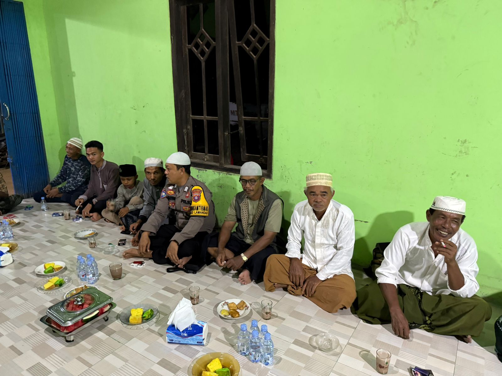 Kegiatan ini sekaligus menjadi ajang silaturahmi dalam rangka menghadiri acara syukuran di Kediaman Rumah Bapak H. MIDUN Pada kesempatan tersebut, Bhabinkamtibmas tak hanya menjalin keakraban dengan warga, namun juga memanfaatkan momen untuk menyampaikan pesan-pesan kamtibmas. Ia mengingatkan pentingnya kewaspadaan terhadap pelaku tindak pidana, serta meningkatkan pengawasan lingkungan dari potensi peredaran narkoba dan kenakalan remaja seperti tawuran.
