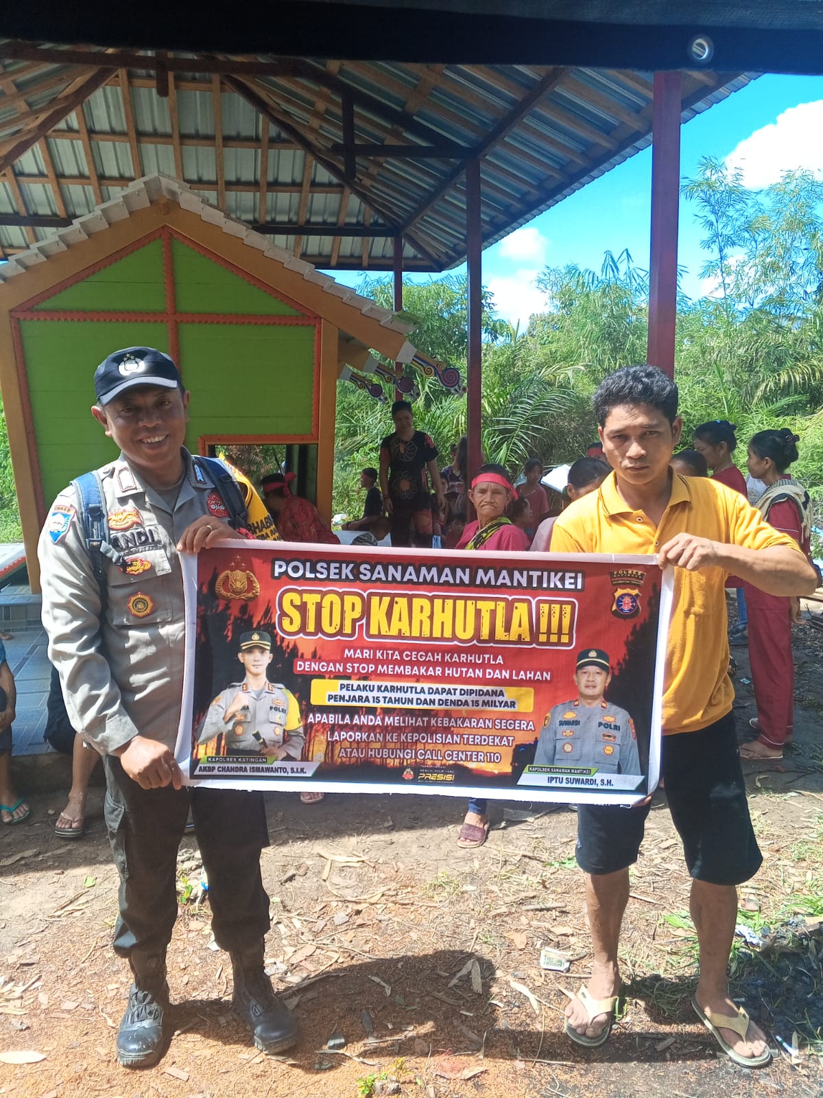 Polres Katingan- Personil Polsek Sanaman Mantikei melakukan sosialisasi larangan membuka hutan dan lahan dengan cara di bakar di wilayah Kecamatan Sanaman Mantikei, Jumat (17/10/2025).