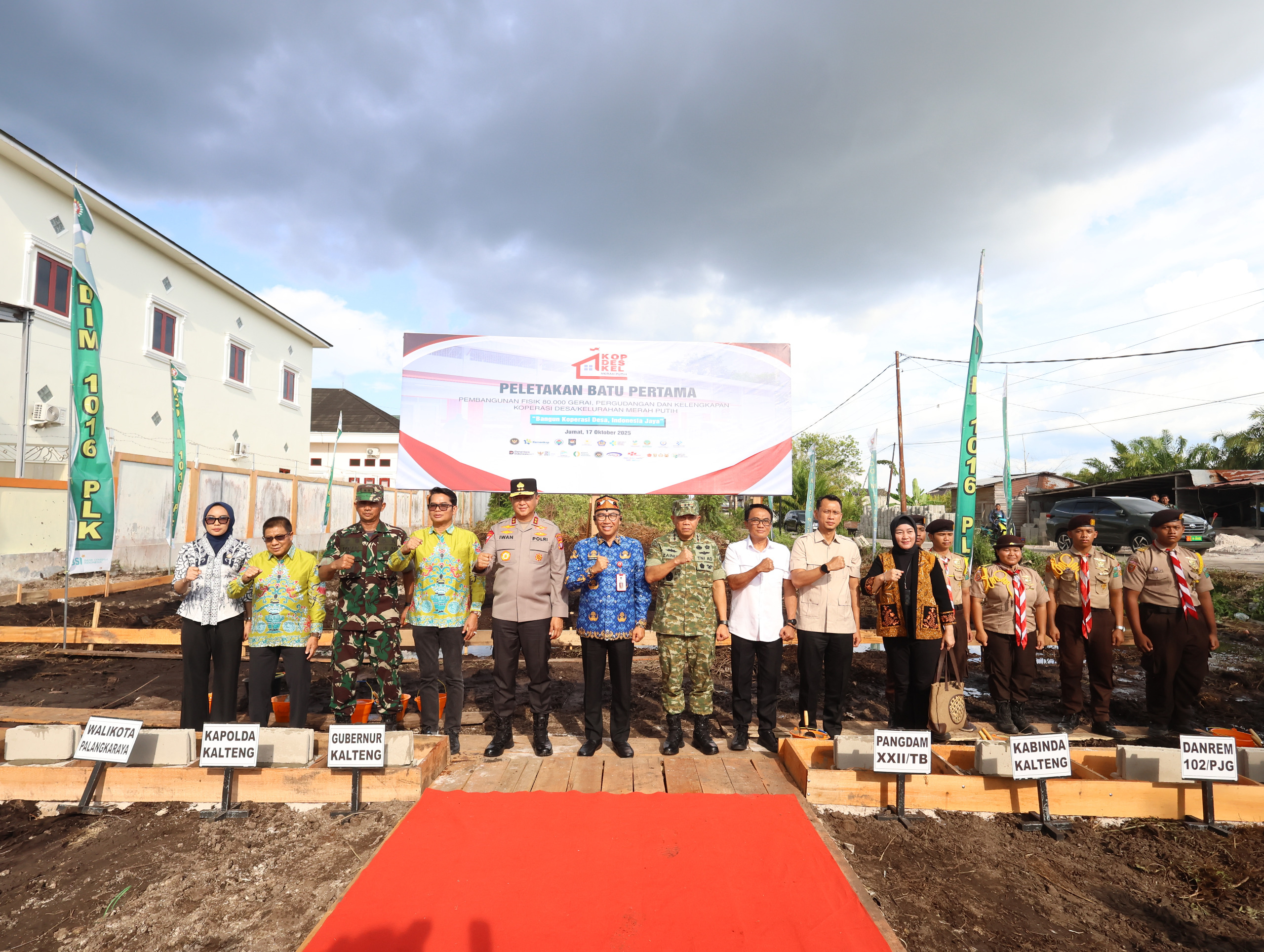 Palangka Raya – Kepala Kepolisian Daerah Kalimantan Tengah (Kalteng), Irjen Pol Iwan Kurniawan, S.IK., M.Si. menghadiri langsung Ground Breaking pembangunan gerai pergudangan dan kelengkapan Koperasi Desa Kelurahan Merah Putih (KDKMP) Kodam XXII/Tambun Bungai di Jl. Seth Adji Induk, Kota Palangka Raya, Jumat (17/10/2025).