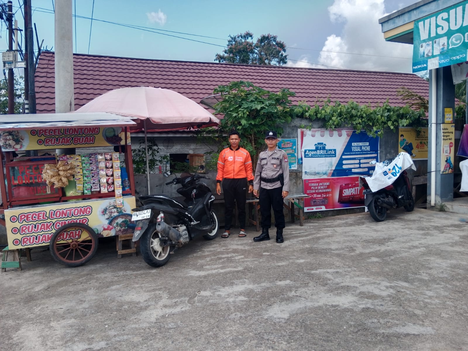 Personil Polsek saat Sambang dialogis bertemu dengan pedagang sekaligus berikan himbauan Kamtibmas yang berjualan.