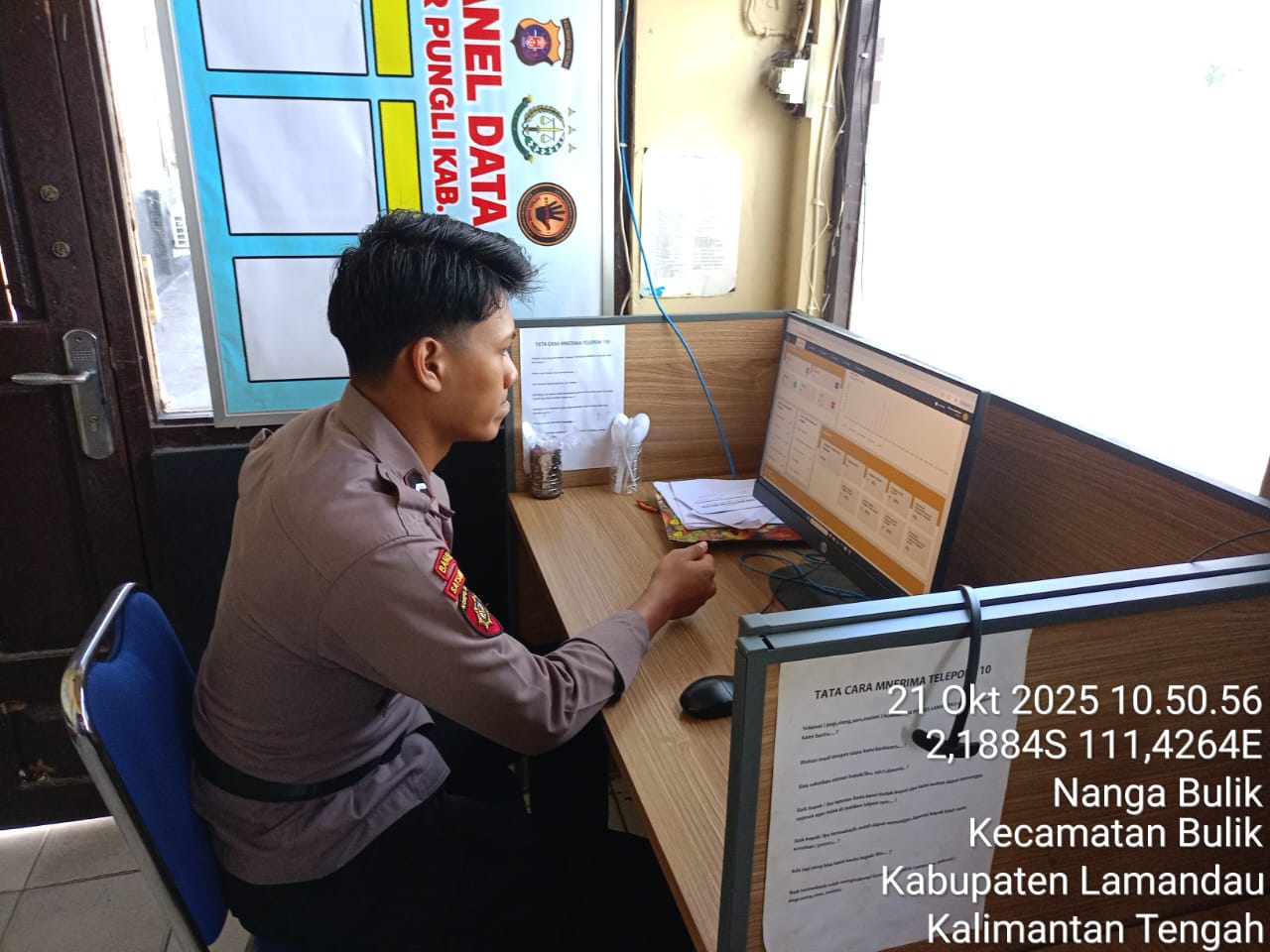 Nanga Bulik — Personel piket Sentra Pelayanan Kepolisian Terpadu (SPKT) Polres Lamandau melaksanakan tugas pelayanan Call Center 110 dengan menerima dan menindaklanjuti laporan dari masyarakat, pada Kamis (23/10/25).
