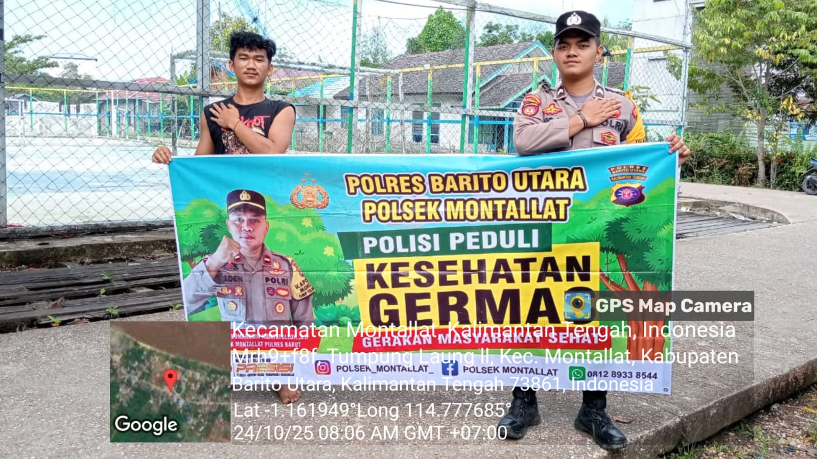 Tribratanews.kalteng.polri.go.id – Polres Barito Utara – Personel Polsek Montallat jajaran Polres Barito Utara, Polda Kalteng melaksanakan Sosialisasi Germas di Kel. Tumpung laung ll Kec. Montallat, Kab. Barito Utara.Jum’at (24/10/2025) Pagi mulai Pukul 08:00 WIB.