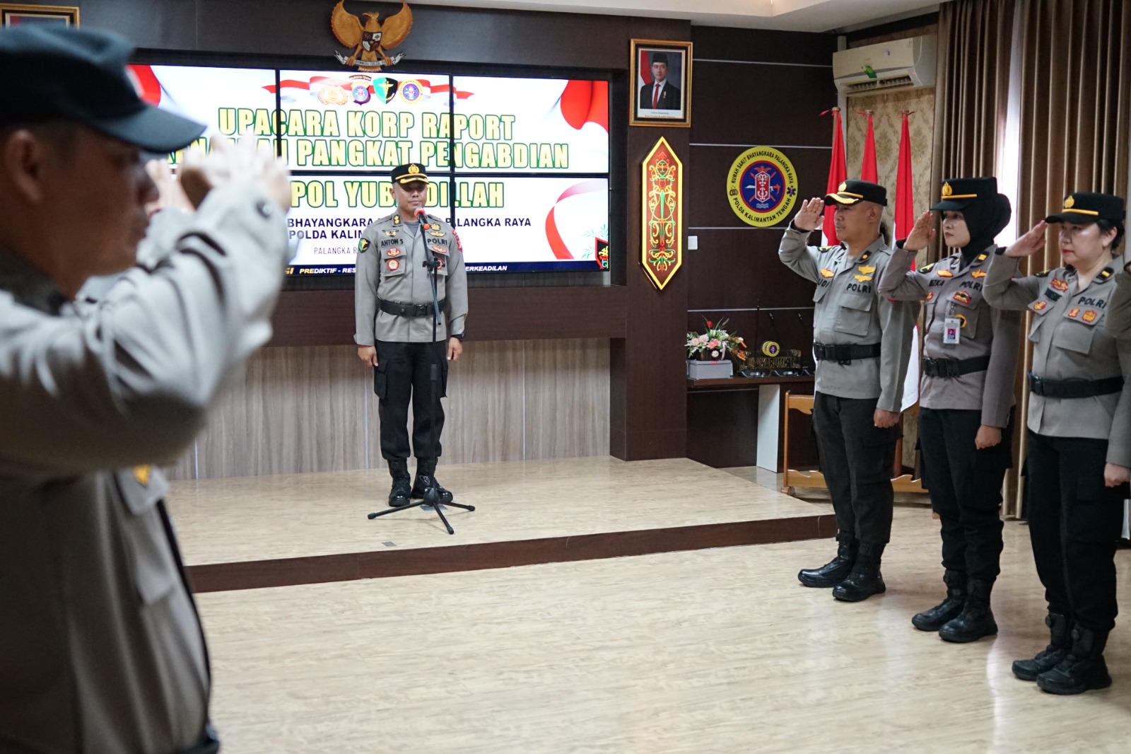 Palangka Raya – Rumah Sakit (Rumkit) Bhayangkara Tingkat III Palangka Raya Polda Kalteng melaksanakan upacara Korp Raport Kenaikan Pangkat Pengabdian kepada Kompol Yubaidillah, Jumat (31/10/2025) siang.