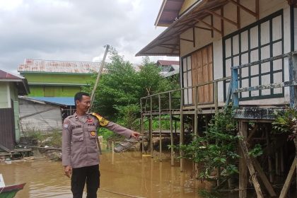 Polres Katingan – Mendeteksi potensi bencana banjir, Bhabinkamtibmas Polsek Katingan Hulu dan Bukit Raya, Polres Katingan, Polda Kalteng Brigpol Reaynold B. Butar-Butar melakukan pemantauan debi...