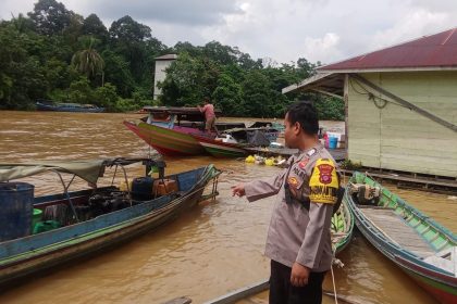 Polres Katingan – Mendeteksi potensi bencana banjir, Bhabinkamtibmas Polsek Katingan Hulu dan Bukit Raya, Polres Katingan, Polda Kalteng Brigpol Reaynold B. Butar-Butar melakukan pemantauan debi...