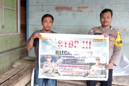 Polda Kalteng – Polres Katingan – Personel Bhabinkamtibmas Polsek Katingan Hulu dan Bukit raya Brigpol Reaynold B. Butar-Butar melaksanakan sosialisasi tentang larangan terhadap pelaku Ilegal Mining k...